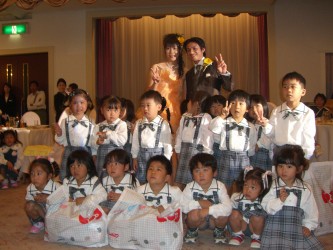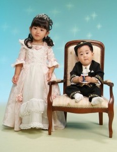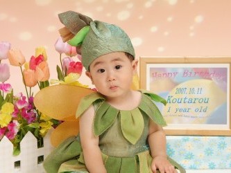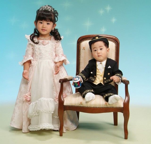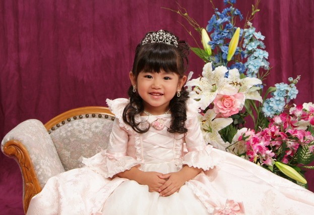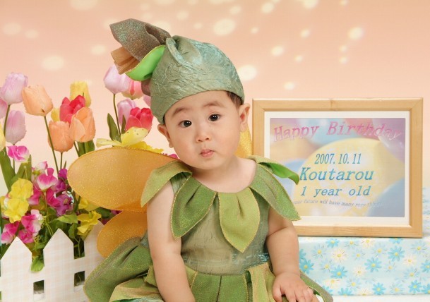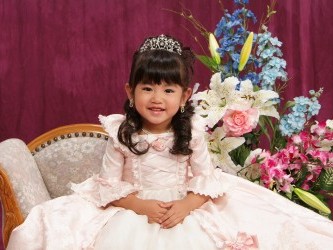 写真屋さんで写してもらった有佳里の七五三の写真。 | たくさんある中から すぐ気に入った衣装が見つかり、お姫様みたいと有佳里は 超ご機嫌で やはり女の子だな〜と 今更ながら思った。 光汰朗の1歳のバースディ記念も兼ねて 一緒に写したので、 かなりの時間がかかってしまったが 有佳里は最後まで モデルにでもなった様に スタッフの指示通りに 笑顔を振りまいていた。(笑) 光汰朗の方は あまり笑顔を見せなかったので スタッフの人達も困っていたけど それでも 可愛い写真が撮れた。 プロのカメラマンは 一瞬の表情をとらえて写す。 さすが違うもんだと感心した。