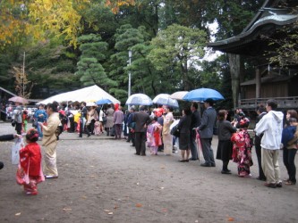 今日は朝から雨が降ったり、やんだりの肌寒い1日だった。 三太パパが休日の日曜日という事で 宇都宮「二荒山(ふたあらやま)神社」で 有佳里の七五三の祝詞(のりと)と、お祓いをしてもらってきた。 参拝の家族が いっぱいで 広い境内も狭く感じる程だった。 祈祷が終わってから 記念にと 有佳里はお神酒を少し口に含んだ。 始めて飲んだ感想は「お酒はまずいね」だった。(笑) お祓いのビデオは ここ 七五三の由来 三歳、五歳、七歳と成長の筋目に近くの氏神様に参拝して無事成長したことを感謝し、 これからの将来の幸福と長寿をお祈りするのが七五三の行事。