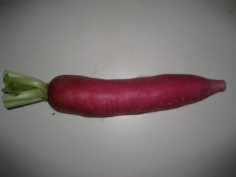 きのう、赤大根も買ってきた。切ると外側だけが真っ赤で、中は真っ白だったのに | 甘酢に1晩漬けておいたら 今日は中までピンク色に きれいに染まっていた。 赤かぶの甘酢漬けと同じだネ。 パリパリをした食感で 赤かぶとは違う味で さっぱりと美味しかった。 赤大根で検索して調べてみると 皮が白いのに、中は赤という大根もあるらしい。 あまりスーパーでは 見かけた事はないけどネ。 いろんな大根があるんだな〜 |