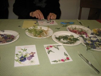 今日の午後、予定していた用事が なくなったので、暇だな〜と思っていたら Kさんから嬉しいお誘いの電話があった。 「友達が習っている押し花のミニ展をやっているので 見に行かない?」と。。。 自転車に乗って 東村山駅のそばにある 押し花教室に行ってきた。 可憐な花と草を使って、絵を描くように置いて仕上げているようだった。 額縁に入っているので 遠目に見ると まるで絵画のように思えた。 照明が反射して うまく写せなかったけど、素晴らしい押し花の作品は ここ そして 押し花で作る葉書の体験が出来るというので 教えてもらいながら仕上げた。ここ 「100円均一で売っている額に入れると 素敵になりますよ」と先生が 言っていたが まだまだ 額に入れて飾る程の作品じゃないよね。(笑)