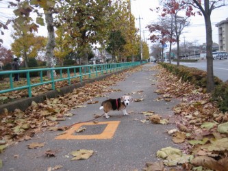 家の近くの「簗下中央公園」まで デジカメ持参でマロンを連れて行った。 | 紅葉は もう終わってしまっていたが、落葉した葉っぱの上を 匂いを嗅ぎながら カサカサと音を立てて歩くマロン。 赤、黄色、茶色の落ち葉は 色とりどりで きれいだった。 今日は寒いので 子供達も あまり遊んでいなかったが、3人組の女の子が バトミントンをしていた。 マロンを見ると「可愛い〜〜」と 近寄ってきてくれた。 頭をなぜられて マロンも嬉しそうにしていたので、写真をパチリ! 今日の散歩は いつもより長めだったので マロンも満足したことでしょう。