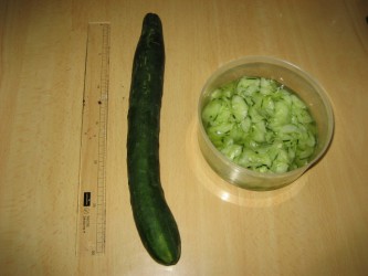 近所のKさんが茨城の家庭菜園で採れた大きくなり過ぎてしまったきゅうりを 「こんなの食べないでしょ?」と持ってきて くれた。「喜んでいただくわ」と私。 太くて長いきゅうりを2本いただいた。 ものさしで測ったら、30cm以上もあった。 1本は、皮をむいて大きな種を こそげ落として酢の物を作った。 他に 美味しい食べ方がないかと 「おばけきゅうり」で検索してみた。 鶏肉と煮物にすると冬瓜みたいな味になる という料理を見つけ出した。 ここ 写真を見るときゅうりとは思えない料理だ。 おばけきゅうりは、手に入れようと思っても 店頭には出回らないきゅうりなので、買う事は出来ない。 Kさん、ありがとう♪ |
