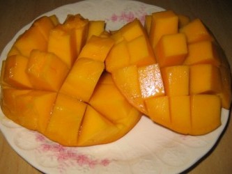 高価な宮崎産マンゴーは とても手が出ないから、道の駅「庄和」で | 売っていたアップルマンゴーを買ってきた。 有佳里に食べさてあげたいと思い、食べ方を検索した。3枚におろしてから 切りこみを入れて スプーンで食べる方法。 ちょっとオシャレ♪ 皮の色が黄色のフィルッピン産マンゴーは 以前良く食べていた。 皮をむいて、平べったい種のまわりを こそげ取って フォークで食べていた。 有佳里は2口位食べて「美味しい〜」とは言いながらも「桃が食べたい」と。。。 子供は正直だ。 マンゴーより桃の方が美味しいと思ったらしい。 早速、桃をむき、お皿に乗せ「光ちゃんに少し残してあげてネ」と言ったけれど、 あまりの美味しさに忘れてしまったのか、1人でいっきに食べてしまった。(笑) 有佳里は桃とメロンが大好き! マロンと同じだね。(笑) |