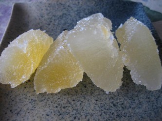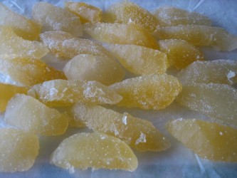 こんなに分厚い皮を捨ててしまうのは、もったいない。 | オレンジピールにしたら美味しいだろうな〜と、2日間かかって作ってみた。 表面の黄色の皮を薄くむいて、わたの部分を使って作る。 クッキングシートに乗せ、陽に当てて乾かし巨大なオレンジピールが出来上がった。 半分に切ってみると、中はまるでゼリーのよう。。。上品な味に大満足♪